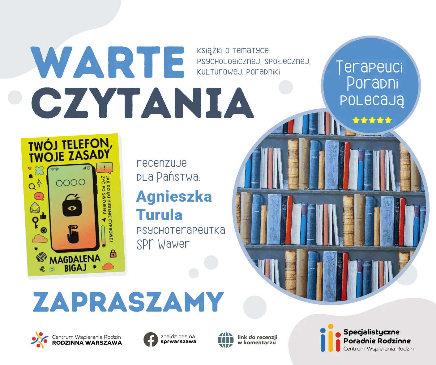 Zapraszamy do przeczytania recenzji książki Magdaleny Bigaj “Twój telefon, twoje zasady. Jak dzięki higienie cyfrowej żyć po swojemu” autorstwa psychoterapeutki SPR Wawer – Agnieszki Turuli