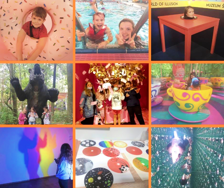Druga połowa wakacji obfitowała w atrakcje i wyjścia. Podczas trwania lata w mieście odwiedziliśmy wiele ciekawych muzeów. Zgłębiliśmy tajniki złudzeń optycznych w Cosmos Muzeum i Muzeum Iluzji. Wybraliśmy się również do Muzeum Szczęścia i Muzeum Selfie, gdzie zafundowaliśmy sobie niezapomniane sesje zdjęciowe. Byliśmy również na basenach: Szczęśliwickim i na Warszawiance. Nie będziemy ukrywać, że to zazwyczaj ulubione dni większości naszego Ogniska. Najchętniej nie wychodzilibyśmy z wody! 🙂
